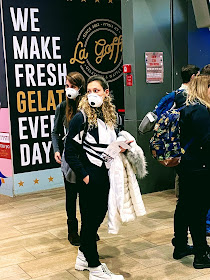 The picture here shows a couple of ladies waiting on line for some gelato at the airport, and they have masks over their faces and this is in the Holy Land, and not even where the outbreak is in China!